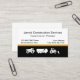 cartão de visita de construção desenhada com três máquinas de construção no fundo que você pode usar em nossas cartas. Personalize o design on-line e apresente sua empresa de maneira profissional.