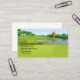 Modelo de cartão de negócios temático do campo de golfe cênico de verão em um simples layout em uma paisagem cênica do campo de golfe. Melhores cartões de visitas para um guardião, Golf Caddy, qualquer um que faça aulas de golfe ou treinamento, ou um campo de golfe.