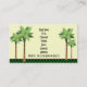 Fraseio feito sob encomenda. Tema tropical. A parte dianteira manda 2 palmeiras em cada lado e em uma beira checkered verde na parte inferior com sala para toda sua informação do negócio - apenas adicionar sua informação personalizada como necessário, e suprime de todas as linhas extra como você prefere. O verso tem 2 palmeiras com água e a areia azuis do oceano. Contemporâneos legal alisam. O estilo de pia batismal do texto cabe o tema sul da praia, mas pode ser personalizado a todo o stlyle da pia batismal ou ser feito sob medida para caber. Excelente para algum negócio costal dos hotéis e os bares, negócios profissionais ou contratantes independentes, agentes de viagens, landscapers, ou serviços gerais.