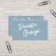 Um simples modelo de cartão de negócios azul minimalista e neutro. Como podem ver, ele apresenta um fundo azul borrado e poeirento neutro. E uma elegante letra branca com script de caligrafia manuscrito. E atrás você tem os ícones das mídias sociais com outras informações. Você pode simplesmente personalizá-lo clicando no botão Personalizar azul e, em seguida, alterar as informações. O que você está esperando! Vá em frente e pegue-o, nós garantimos a incrível qualidade e o transporte rápido.