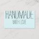 cartão de visita de preto e branco minimalista, moderno, moderno com o texto: Fez com que o Handmade estivesse com amor na frente e obrigado que você escrevesse no verso.