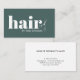 Modelo de cartão de negócios moderno totalmente personalizável com fontes ousadas, fundo verde e ícone de tesoura prateada falsa. Perfeito para salão de cabelo, cabeleireiros.