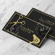 Cartão De Visita Tesoura Dourada do Salão de Cabelo e Secador Preto