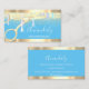 Cartão De Visita Tesoura moderna do cabeleireiro pinga azul Dourado
