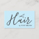 Elegante modelo de cartão de negócios personalizável com ícone de tesoura preta/azul claro e texto em negrito com letra de mão. Design moderno limpo, perfeito para cabeleireiro, cabeleireiro.