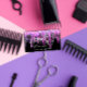 Cartão De Visita Tesoura profissional do cabeleireiro Prateado Rosa