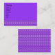 cartão de visita roxo do teste padrão. Design de cartão colorido para o negócio ou o uso pessoal. Adicione sua informação de MySpace, de Facebook ou de LinkedIn a este cartão de visita artístico. Ou use este cartão colorido da arte para seus próprios cartões de visitas ou cartões telefónicos originais. Este design digital da arte abstracta fará definida seu cartão de visita estar para fora com seus amigos, clientes e clientes. Os cartões de visitas são feitos com os 2 tomados partido, impressão a cores completa. 10 tipos de estoque do cartão estão disponíveis incluindo o padrão, o prêmio ou o luxo. Os cartões de visitas são customizáveis, você pode mudar o tamanho e a cor do estilo de pia batismal. Disconto de volume disponível quando você comprar no volume.