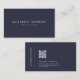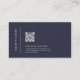 Modelo de cartão de negócios mínimo e elegante com código QR. O fundo azul escuro está na tendência e é clássico. Este modelo de cartão de negócios moderno é fácil de personalizar, simplesmente adicione seu próprio logotipo e código de QR comercial. Crie e adicione seu próprio código QR exclusivo para direcionar facilmente clientes para seu site. É um olhar profissional e elegante para elevar sua marca.