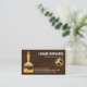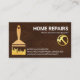 Um cobrir de madeira apresenta um design de pincel de ouro criativo. As cerdas ao pincel são, na verdade, um design de silhueta de construção de ouro. Perto do topo da placa está o nome comercial "REPARAÇÕES DOMÉSTICAS" e uma opção de legenda de slogan que você pode alterar. Segue-se um logotipo de martelo dourado que você pode usar com os detalhes de contato próximos à base. No verso, é utilizado o mesmo tema da madeira. No topo está o logotipo dourado seguido pelo seu nome prestigioso, os detalhes de contato e uma opção de slogan para divulgar seus serviços. Um cartão criativo de excelente para todos, especialmente para temas como construção, mão, madeira e pintura. #carpenter #trabalho de madeira #carpentry #construcção #empreiteiro #empreiteiro #trabalhador #remodelação #empreiteiro #homerepair #homebuilder #zazzlemade