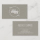 Cartão de visita de fonte elegante e clássico com script branco com logotipo personalizável na frente. Textura sutil e minimalista de cinza de textura falsa em tecido.