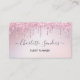 Cartões de visitas de pintura que pingam brilho rosa. Tinta pingando rosa penteada prateada sobre um fundo metálico rosa. Linda tipografia moderna. O cartão pode ser usado para todas as profissões, designer de interiores, artista, maquiador, planejador de eventos, proprietário de salão, etc. O mesmo design também está disponível em um fundo branco.