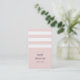 Design de cartão de visita moderno e chic em um formato vertical exclusivo apresenta três grandes faixas brancas em um fundo cor-de-rosa pincelado pastel, com seu nome e nome comercial ou título em uma mistura atraente de serifas minúsculas e tipos de bonés modernos. Adicione as informações de contato do cheio à parte traseira em azul rico marinho. Adequado para qualquer ocupação; exemplo mostrado para empresas de boutique.