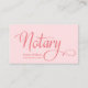 Um elegante cartão de visita de logotipo na moda, notário, com tipografia de script de caligrafia e caneta de pena com fundo rosa-pinto-pincelado. Ideal para notários, profissionais, advogados, agentes de empréstimo, agentes hipotecários...