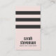 Design inteligente e elegante com três faixas pretas horizontais na frente das rosas claro.Um cartão de visita versátil para profissionais criativos e empresários. Este cartão de visita também é excelente para salões de beleza, spas, cosmetólogos, esteticistas, estúdios de dança, boutiques, designers de joias, cabelos e estilistas de moda ou qualquer outro profissional sensível à imagem.