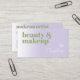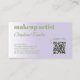 Bonita e elegante estilo minimalista de maquiagem artística cartão de visita. Cartão de visita de cor violeta lilás de lavanda leve contemporânea com um retrorreflector moderno e um sábio minimalista verde e um sofisticado tipo branco. Clique em 'Personalizar' para encontrar o modelo pronto para ser personalizado com seu nome comercial, profissão e informações de contato, texto e código QR exclusivos de sua escolha. Esta design única e bonito foi feita para aqueles que gostam de sofisticados designs fortes clássicos.