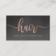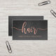 Um elegante e moderno guião de cabelos, rosa, cartão de visita de folha de ouro, com uma elegante e moderna tipografia de estilo, com letras simples, em preto, aquarela e fundo elegante. todo o texto é personalizável, adicione suas mídias sociais.