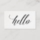 Estes cartões de visitas elegantes dizem "olá!" na caligrafia moderna, em um fundo branco do olhar do papel da aguarela. Personalize a parte traseira com sua informações de contacto.