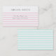 NewParkLane - Faça uma impressão instantânea com estes Cartões de visitas elegantes em cores elegantes, com um padrão moderno, abstrato, de listras brancas e cor-de-rosa macia. A parte de trás tem um padrão listrado verde e branco da menta. Todos os estilos de texto, cores, tamanhos podem ser modificados para ajustado das suas necessidades. Verifique se há itens correspondentes na coleção. Você tem desejos pessoais específicos de design? Ou você deseja este design em um produto que não esteja atualmente nesta coleção? Sinta-se à vontade para me contactar, e terei todo o prazer em fazê-lo para si sem custos adicionais!