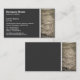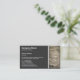 Um design de modelo de cartão de negócios decorado com uma textura de foto ou imagem na área grande e direita em uma cor complementar no lado esquerdo com uma linha de borda branca dividindo as duas áreas. Pronto para ser personalizado com seus detalhes. O verso da placa tem o mesmo layout decorativo, mas a área de texto foi deixada em vazio. Isso pode ser deixado como uma área útil para anotações etc ou personalizada com texto adicional. As decorações também podem ser limpas ou substituídas. Você também pode adicionar gráficos adicionais, por exemplo, um logotipo.