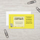 A frente deste cartão de visita apresenta um desenho de uma caixa em um palete prestes a ser erguido por uma tomada de palete. Há espaço para o nome, o slogan e o site da sua empresa serem escritos na caixa. O resto dos seus contatos vão ao lado da caixa no lado direito. As costas são vazios. Um bom cartão para armazéns, logística, armazenamento, empresas em movimento, comerciantes de paletes, comerciantes de paletes, oficinas de reparação de paletes, carga, transporte, carga e fornecedores de caixas, embalagens e fornecimentos de expedição. Atualmente, o fundo é amarelo e o texto é preto. Mas você pode mudar para qualquer cor que quiser.