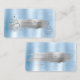 Cartão de visita de na moda elegante com cupcakes de brilho prateado e trava em fundo metálico azul.