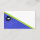 No verso, utiliza-se o mesmo design. No triângulo azul você tem o logotipo seguido do nome comercial, dos detalhes de contato e de um slogan para anunciar seus serviços.