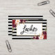 Script de Pincel Moderno, Floral de Borgonha de Cores Aquáticas, Cartão de visita de Arrasto de Maquiagem de Lashes - Listras Pretas e Brancas