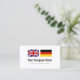 Modelo de cartão de negócios alemão-inglês do tradutor dos serviços de tradução. O design de cartões feito sob encomenda da visita com Union Jack britânico e Alemanha embandeiram o logotipo da empresa. Cartões simples com tipografia moderna para o nome e o slogan. Os cartões profissionais para serviços de tradução, professor de língua, educação, indústria de viagens, produtos, visto que seguram serviços, serviços do tradutor, a lei internacional, a agência de viagens, o transporte, a exportação da importação, a língua traduzindo a empresa, os negócios de comércio, o freelancer etc. disponível em tamanhos diferentes, a espessura de papel e o canto redondo cortaram a forma. Também disponível para outras línguas.