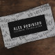 Um design moderno com frases de principiante em alemão em cinzas escuras em um fundo de cinza mais leve. No meio, há uma caixa preta para o seu nome e profissão, ou um nome comercial e slogan. Isto seria perfeito para um professor de língua alemã, um intérprete, um tradutor ou um tutor privado. No verso, o design é repetido com mais espaço para seus detalhes.