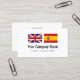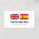 Modelo de cartão de negócios inglês espanhol do tradutor dos serviços de tradução. Design de cartões feito sob encomenda da visita com Union Jack britânico e logotipo espanhol da empresa da bandeira. Cartões simples com tipografia moderna para o nome e o slogan. Os cartões profissionais para serviços de tradução, professor de língua, educação, indústria de viagens, produtos, visto que seguram serviços, serviços do tradutor, a lei internacional, a agência de viagens, o transporte, a exportação da importação, a língua traduzindo a empresa, os negócios de comércio, o freelancer etc. disponível em tamanhos diferentes, a espessura de papel e o canto redondo cortaram a forma. Também disponível para outras línguas. Bandeira da espanha e da Inglaterra Reino Unido Grâ Bretanha. Transfira arquivos pela rede suas próprias bandeiras de país opcionalmente. Obtenha umas ideias mais criativas e a inspiração livre em nossa loja original.