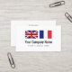 Modelo de cartão de negócios francês-inglês do tradutor dos serviços de tradução. O design de cartões feito sob encomenda da visita com Union Jack britânico e France embandeiram o logotipo da empresa. Cartões simples com tipografia moderna para o nome e o slogan. Os cartões profissionais para serviços de tradução, professor de língua, educação, indústria de viagens, produtos, visto que seguram serviços, serviços do tradutor, a lei internacional, a agência de viagens, o transporte, a exportação da importação, a língua traduzindo a empresa, os negócios de comércio, o freelancer etc. disponível em tamanhos diferentes, a espessura de papel e o canto redondo cortaram a forma. Também disponível para outras línguas. Bandeira de France e de Inglaterra Reino Unido Grâ Bretanha. Transfira arquivos pela rede suas próprias bandeiras de país opcionalmente. Obtenha umas ideias mais criativas e a inspiração livre em nossa loja original.