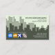 Quatro cartazes sentam-se na base do cartão que mostra os modos de transporte da logística, o frete pelo mar, a terra, o ar e o trilho. Uma opção do slogan está disponível acima para que você anuncie seus serviços. Todo o isto contra um ajuste urbano criativo da cidade com silhuetas da construção como um cobrir do fundo. Seus nome e posição sentam-se na parte superior enquanto para o sul a isto, perto da base, são os detalhes do contato.