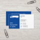 Cartão de visita profissional com caminhão branco sobre fundo azul. Você pode personalizar o texto agora!