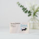 Este cartão de visita original promove o esporte novo de Treibball. Mostra um cão do estilo dos desenhos animados que reune as bolas do exercício. O subtítulo lê "Treibball um jogo de bola novo inteiro"