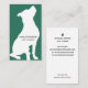 O cartão de visita de treinamento simples e moderno para cães aparece na carta verde com silhueta branca para cães.