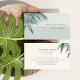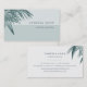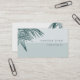 Cartões de visitas tropicais chic apresentam fundo de faixa colorida em aqua cinza gelada com um aglomerado de folhas de palmeiras verdes jasper florescendo do canto. Personalize com seu nome e nome comercial, título ou profissão. Adicione seus detalhes de contato de cheio ao fundo em uma mistura chic de sans serif e itálico modernos, enfeitiçados com um amante de palma menor no canto superior direito. Uma escolha única para agentes de viagem, gerentes de propriedades de férias ou qualquer negócio em um cenário tropical ou insular.