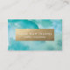 Cartão De Visita Turquesa Aquarela e Folha Dourada