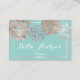 Cartão De Visita Turquesa Elegante e Design de Flor Silver Dahlia