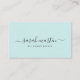 Cartões de visitas elegantes de teal/turquesa com sua assinatura com baloiços em uma caligrafia manuscrita, juntamente com seu título. A parte de trás tem suas informações de contato. Este design simples e minimalista é excelente para um maquiador, um cabeleireiro, um técnico de lascas, um salão de beleza / unhas ou qualquer negócio de mulheres.