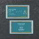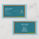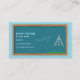 Cartão de visita para professor de matemática ou de geometria com quadro azul em madeira, compasso e equação da lei de Newton da gravitação universal. As informações de telefone e email são decoradas por ícones. Os detalhes de contato do cheio estão disponíveis no verso.