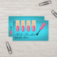Figura de desenho animado de quatro dedos vestindo unhas compridas e esmalte cor-de-rosa. O design tem uma cor de fundo azul com uma cor damasco de luz. Este design cartão de visita é perfeito para um salão de unhas, um cosmetólogo ou um belicista.