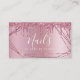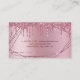 Este cartão de visita de técnico de unhas deslumbrante apresenta textura metálica falsa de ouro rosa pingando brilho, quadro e letra elegante de caligrafia.