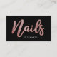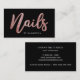 cartões de visitas elegantes e simples para a sua empresa Unhas, apresentam um script de folha de ouro rosa, em um fundo preto com seu nome em branco. Adicione seus detalhes à parte traseira do cartão. O fundo no fundo é preto e o texto está em um roteiro branco moderno.