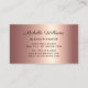 Esta cartão de visita profissional moderna é perfeita para maquiadores e designers de interiores, assim como para outras profissões onde você quer um toque de brilho e brilho. O design apresenta um design de brilho brilhante rosa dourado na frente com seu nome e profissão em um roteiro preto para personalizar. A parte traseira da placa é um rosa ouro correspondente com os detalhes de contato a serem personalizados. Desenhada pela artista Susan Coffey.