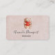 Cartões de visitas com uma ilustração de aquarela fofa. Um ursinho castanho carregando um grande coração vermelho. Pink blush background com uma textura de papel de estilo de vintage.