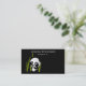 Urso panda preto e branco sentado entre os caules de bambu verdes em um pequeno bosque. Fundo preto. O verso do cartão tem um fundo verde-oliva e um lugar para todos os seus detalhes. Personalize de acordo com o seu gosto. Excelente para biólogos, zoólogos, veterinários ou qualquer outra pessoa que trabalhe com animais selvagens. Poderia também funcionar para as empresas temáticas asiáticas.