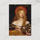 Monograma design.Uma loura romântica de cabelos longos e elegante com pérolas brancas, flores damascos. Linda pintura pré-rapelita, sofisticados tecidos vermelho-damascos de ouro de um antigo fantasma medieval.. Este cartão legal e artístico é perfeito para designers de moda, cabeleireiros, figurantes, donos de roupas, donos de butiques, artistas, cosméticos, shoppings pessoas, consultores de armários e outras profissões criativas.