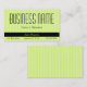 Um simples design striped em um cartão de visita pronto. As pinstripes brancas finas e o bar preto fazem parte do design e foram projetados para permitir que você mude facilmente a cor de fundo para se coordenar com suas próprias cores favoritas. Há mais de 100 opções disponíveis. Você pode adicionar mais informações ou uma imagem facilmente à parte traseira desta placa.