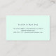 Uma moderna, minimalista, roupa azul e uma design verde-menta clara dão uma primeira impressão profissional para a sua empresa. A frente do cartão de visita apresenta o nome e a localização da sua empresa. A parte traseira tem amplo espaço para sua descrição de negócios e informações de contato. A elegante tipografia azul de marfim e indigo dá a esta cartão de visita um olhar limpo e moderno.
