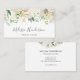 O cartão de visita floral elegante com peões de aquarela clara cai com sotaques de folhagem de ouro (não reais) e verde.